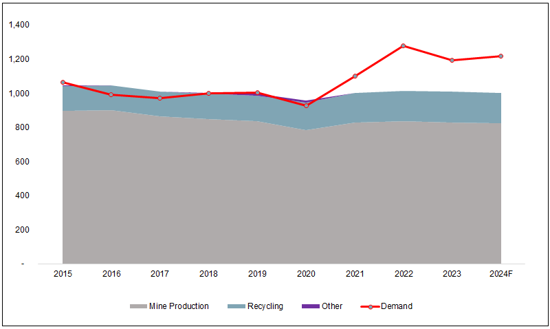 Figure 6. Silver Demand Is Outpacing Supply (2016-2025F)