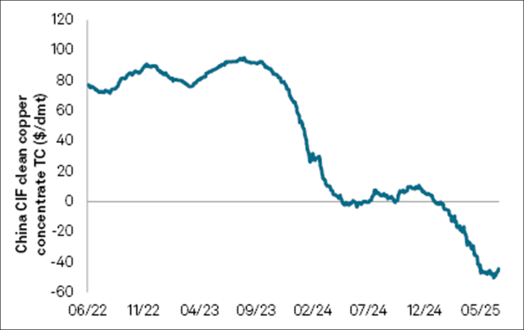 Figure 3. Copper Treatment Charges Plunge to New Record Low (2022-2025)