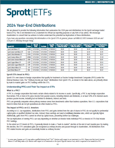 In most cases, the estimated “Ordinary Income” distributions from Sprott ETFs are driven by Passive Foreign Investment Company (PFIC) holdings within the ETFs.